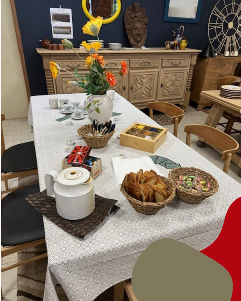 Dans le cadre de notre partenariat, Gรฎte de France Moulins a organisรฉ ร lโAmรฉnagerie un cafรฉ dรฉco en collaboration avec la boutique de linge de maison Carrรฉ Blanc et lโarchitecte dโintรฉrieur Raphaรซlle SOMMER.